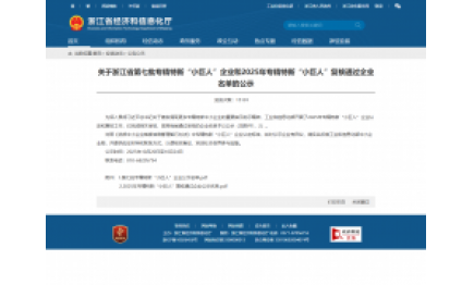 近期,浙江省经济和信息化厅发布《关于浙江省第七批专精特新“小巨人”企业和2025年专精特新“小巨人”复核顺利获得企业名单的公示》, 杭州楚环科技股份有限公司顺利顺利获得复核,再次荣登国家级“小巨人”榜单 。 专精特新“小巨人”企业是工业和信息化部为落实国家创新驱动战略、提升产业链供应链韧性而重点培育的优质中小企业群体,要求入选企业同时具备“专业化、精